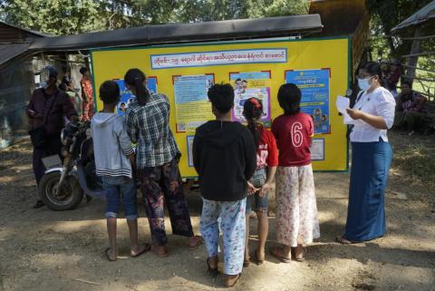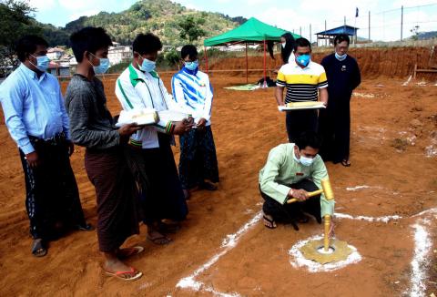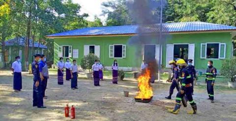 ပွင့်ဖြူမြို့နယ်မီးသတ်ဦးစီးဌာနကမီးဘေးကြိုတင်ကာကွယ်ရေးမီးငြှိမ်းသတ်နည်းလက်တွေ့ သရုပ်ပြသ