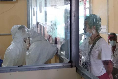 ရန်ကုန်-ပုသိမ်ကားလမ်းကိုဗစ်-၁၉ကျန်းမာရေးစစ်ဆေးဂိတ် နှစ်ခုတွင်ကုန်တင်ယာဉ်မောင်းနှင့် ယာဉ်နောက် လိုက်များအား ကိုဗစ်-၁၉ရောဂါပိုးရှိ/မရှိ Rapid Antigen Diagnostic Test Kit ဖြင့်စစ်ဆေး ဆောင်ရွက်နေ