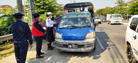 ရန်ကုန်မြောက်ပိုင်းခရိုင်၊ ထန်းတပင်မြို့နယ်၊ ရန်ကုန်-ပုသိမ်ကားလမ်းမ မိုင်တိုင်အမှတ်(၈/၅) နှင့် မိုင်တိုင်အမှတ်(၁၄/၂)ကိုဗစ်-၁၉ကျန်းမာရေးစစ်ဆေးဂိတ်နှစ်ခုတို့တွင် ကုန်စည်းစီးဆင်းမှုများ အတွက် ဖြတ်သန်းသွားလာလျက်ရှိသည့်