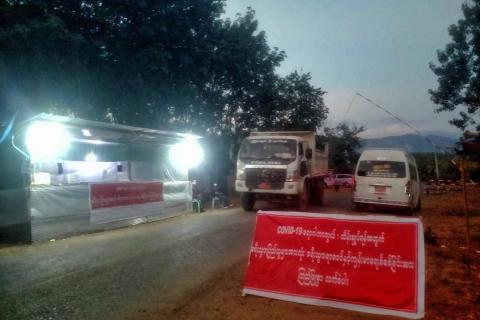 မိုင်းယုမြို့တွင် ကိုဗစ်-၁၉ရောဂါ ကာကွယ်ထိန်းချုပ်တားဆီးနိုင်ရေးအတွက် ကျန်းမာရေး စစ်ဆေးရေးဂိတ်တွင် နေ့ညမပြတ် စစ်ဆေးဆောင်ရွက်