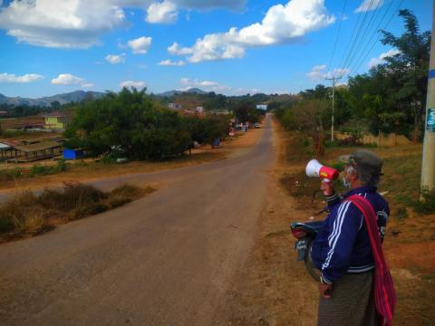 ကိုဗစ်-၁၉ ရောဂါကူးစက်ပြန့်ပွားမှုမရှိစေရေးနှင့် ပတ်သက်၍ပြည်သူတို့တိုက်တွန်းအကြံပြုချက် နှင့် သိရှိလိုက်နာရမည့်အချက်များကို ရှမ်းပြည်နယ်(တောင်ပိုင်း)၊ တောင်ကြီးခရိုင်၊ ကျောက်တလုံးကြီးမြို့ပေါ် (၆)ရပ်ကွက်တွင် ယနေ့နံနက်၈နာရီခန့်က လိုက်လံအသိပေးနှိုးဆော်ခဲ့ကြောင်း သိရသည်။