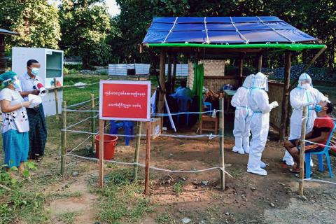 ကချင်ပြည်နယ်၊ ဗန်မော်ခရိုင် ရွှေကူမြို့ အောက်လေးလမ်းဆုံ စုပေါင်းစစ်ဆေးရေးဂိတ်၌ ရောက်ရှိလာသည့် ကုန်တင်ယာဉ်(၆၀)စီးမှ ယာဉ်မောင်းနှင့်ယာဉ်နောက်လိုက် (၁၁၀)ဦးအား မြို့နယ် ပြည်သူ့ကျန်းမာရေးဦးစီးဌာန ကျန်းမာရေးဝန်ထမ်းများက ယနေ့နံနက် ၉ နာရီခွဲခန့်တွင် RDT(Rapid Antigen Diagnostic Test Kit)ဖြင့် ကိုဗစ်−၁၉ရောဂါပိုး ရှိ/မရှိ စစ်ဆေးခဲ့ရာ ၄ ဘီးကုန်တင်ယာဉ်မှ ယာဉ်မောင်း အောင်မြေသာဇံမြို့နယ် ၁၉ လမ်း၊ မင်းတဲအီကင်းရပ်ကွက် အကွက်(၉၈)၌ နေထိုင်သော အမျိုးသား(၁)ဦးထံတွင် ကိုဗစ်−၁၉ ရောဂါပိုး ထပ်မံ စစ်ဆေးတွေ့ရှိခဲ့ကြောင်း သိရှိရသည်။