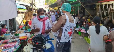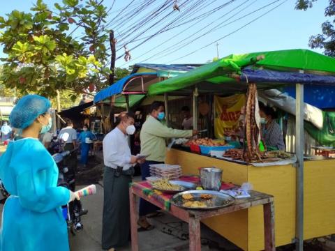 မင်္ဂလာဒုံမြို့နယ်တွင် လူစည်ကားရာဈေးများတွင်နှာခေါင်းစည်းများအခမဲ့ဖြန့်ဝေ