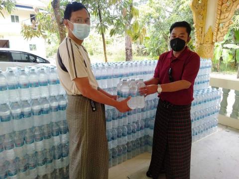 Quarantine ဝင်ရောက်နေသူများအတွက် သောက်သုံးရေအဆင်ပြေစေရန် အလှူရှင်အသီးသီးမှ လှူဒါန်းခဲ့သော ရေသန့်ကဒ်(၆၀၀)ကျော်ထိလှူဒါန်းရရှိ