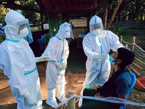 ကချင်ပြည်နယ်၊ ဗန်မော်ခရိုင် ရွှေကူမြို့ အမှတ်(၁)ရပ်ကွက်ရှိ ခုံခမ်းအခြေခံပညာအလယ်တန်းကျောင်း Facility Quarantine Centre ၌ အသွားအလာကန့်သတ်ထားရှိသူ (၂၂) ဦးအား ယမန်နေ့နံနက် ( ၉ ) နာရီခွဲခန့်တွင် မြို့နယ်ပြည်သူ့ကျန်းမာရေးဦးစီးဌာနမှ RDT (Rapid Antigen Diagnostic Test Kit) ဖြင့် ကိုဗစ်−၁၉ ရောဂါပိုး ရှိ/မရှိ စစ်ဆေးပေးခဲ့ရာ ရွှေကူမြို့ အမှတ်( ၁ ) ရပ်ကွက်၊ ခုံခမ်းရပ်နေသူ အမျိုးသမီး(၁)ဦးထံတွင် ကိုဗစ်−၁၉ရောဂါပိုး စစ်ဆေးတွေ့ရှိခဲ့၍ မြို့နယ်ပြည်သူ့ဆေးရုံသို့ ပို့ဆောင်ကာ ဆေးကုသမှုများခံယူလျက်ရှိသည်။