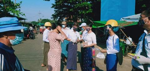 မူဆယ်ခရိုင်၊ မုံးကိုးမြို့၌ မြို့အထွေထွေအုပ်ချုပ်ရေးဦးစီးဌာနမှ ဝန်ထမ်းများက နှာခေါင်းစည်းများ ဖြန့်ဝေ