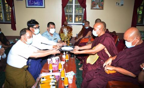 ဆရာတော်၊ သံဃာတော်ကြီးများက ကော့သောင်းမြို့ဘိုးဘွားရိပ်သာသို့ အလှူငွေများလှူဒါန်း