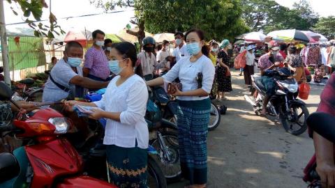 တောင်ဥက္ကလာပမြို့နယ် နန္ဒဝန်ဈေး၌ ၂၀၂၀ ပြည့်နှစ် နှစ်တစ်ရာပြည့် အမျိုးသားအောင်ပွဲနေ့ အထိမ်းအမှတ် သတင်းစကား လက်ကမ်းစာစောင်များဖြန့်ဝေ