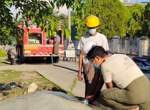မြန်အောင်မြို့ မီးဘေးကြိုတင်ကာကွယ်ရေးအတွက် မီးသတ်ရေကန်များအတွင်း ရေဖြည့်ခြင်းများ ဆောင်ရွက်