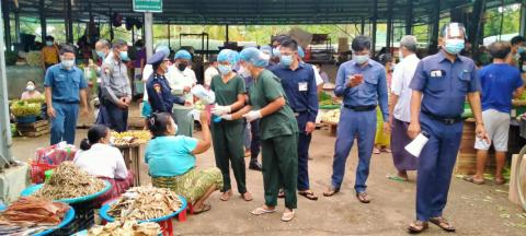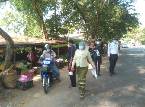 ရန်ကုန်တိုင်းဒေသကြီး၊ ရန်ကုန်တောင်ပိုင်းခရိုင်၊ ဆိပ်ကြီးခနောင်တိုမြို့နယ်၌ ကိုဗစ်-၁၉ ရောဂါ ကာကွယ်၊ ထိန်း ချုပ်ရေးလုပ်ငန်းများကို အရှိန်အဟုန်မပြတ် ဆက်လက် ဆောင်ရွက်လျက်ရှိရာ ယမန်နေ့ နံနက်ပိုင်းမှ စ၍ မြို့နယ် ဌာနဆိုင်ရာများ ပူးပေါင်း၍ ကိုဗစ်-၁၉ ရောဂါ ကာကွယ်ခြင်းဆိုင်ရာ ကျန်းမာရေးအသိပညာ မြှင့်တင်ရေးနှင့် ပြုမူပြောင်းလဲရေး ဆက်သွယ် ပညာပေး လူထုလှုပ်ရှားမှု စီမံချက် (Mask and Face Shield Campaign) ကို မြို့နယ်အတွင်း လူစည်ကားရာနေရာများတွင် ပြုလုပ်ခဲ့သည်။