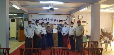 မန္တလေးမြို့၊ ပြည်ကြီးတံခွန်မြို့နယ်၊ အ.ထ.က (၂၇) ကျောင်းတွင် ဖွင့်လှစ်ထားသော Quarantine Center မှ ကျန်းမာရေး ဝန်ထမ်းများနှင့် စေတနာ့ဝန်ထမ်း (Volunteer) များအတွက် မန္တလေးစက်မှုဇုံ စီမံခန့်ခွဲရေးကော်မတီမှ ကျန်းမာရေး အထောက် အကူပြု ပစ္စည်းများဖြစ်သော PPE ဝတ်စုံများနှင့် လက်အိတ်များ လှူဒါန်းခြင်း ယမန်နေ့မွန်းလွဲပိုင်းက ပြည်ကြီးတံခွန် မြို့နယ်ရှိ ကနောင်ခန်းမတွင် ကျင်းပပြုလုပ်သည်။
