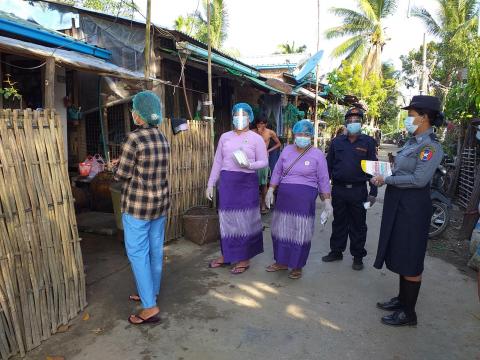 ကျောက်တန်းမြို့နယ်တွင် ကိုဗစ်-၁၉ ရာဂါကြိုတင်ကာကွယ်ရေး Mask နှင့် လက်ကမ်း စာစောင်များ အခမဲ့ဖြန့်ဝေခြင်းနှင့် အသိပညာပေးခြင်းများ အိမ်တိုင်ရာရောက် ကွင်းဆင်း ဆောင်ရွက်