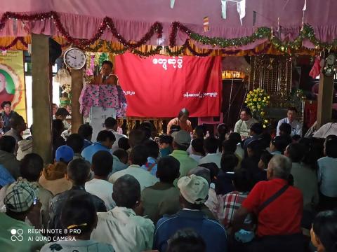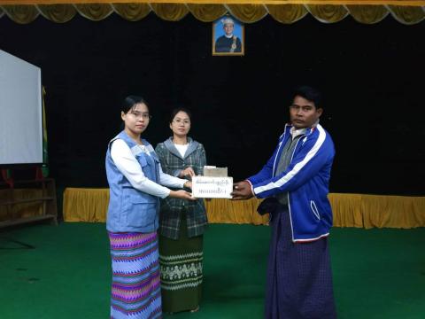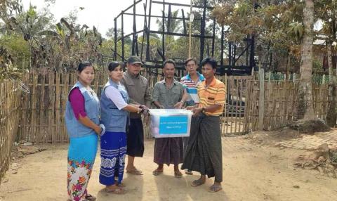 အင်းရှည်ကုန်းကျေးရွာမှ မီးဘေးသင့်အိမ်ထောင်စုအတွက် ထောက်ပံ့ပစ္စည်းနှင့် ထောက်ပံ့ငွေ ပေးအပ်