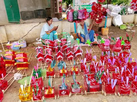 စလင်းမြို့နယ်၌ ဝါကျွတ်လက်ဆောင်သီတင်းကျွတ်မီးပုံးနှင့် ကလေးကစားစရာရောင်စုံမီးထွန်းအရုပ်များ ရောင်းအားကောင်း