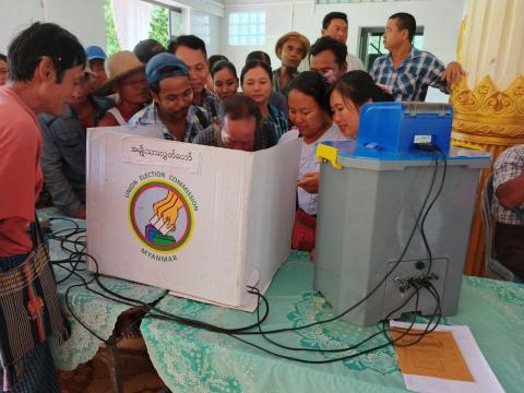 သာယာဝတီမြို့နယ်၌ မြန်မာအီလက်ထရောနစ်မဲပေးစက်ဖြင့် လက်တွေ့စမ်းသပ်မဲပေး