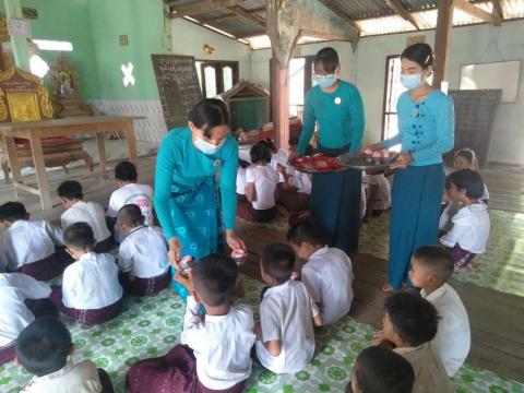 ဗုဒ္ဓဘာသာယဉ်ကျေးမှုသင်တန်းသား မောင်မယ်များအား အာဟာရဒါန ကျွေးမွေးလှူဒါန်း