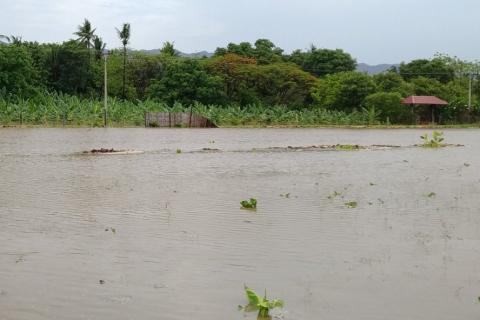 ကျောက်ဆည်မြို့တွင် တောင်ကျရေဝင်ရောက်မှုကြောင့် ပဲတီစိမ်းနှင့်နှမ်းသီးနှံ စိုက်ခင်းအချို့ပျက်စီး