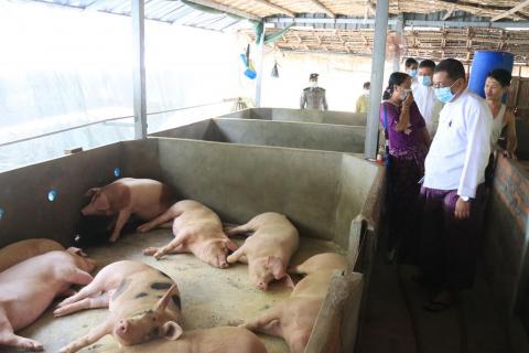 မွန်ပြည်နယ်စီမံအုပ်ချုပ်ရေးကောင်စီဥက္ကဋ္ဌ အသားတိုးဝက်မြူရေးလုပ်ငန်း လုပ်ကိုင်နေမှု အခြေအနေ အားကွင်းဆင်းကြည့်ရှု