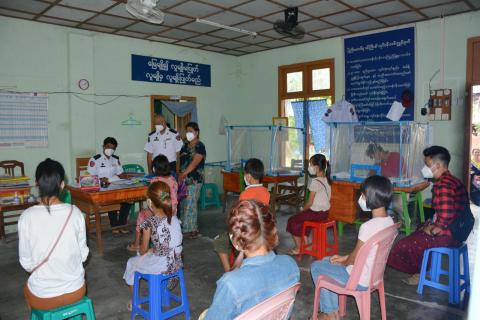 ဧရာဝတီတိုင်းဒေသကြီး၊ ပုသိမ်ခရိုင်၊ ငါးသိုင်းချောင်းမြို့၊ စည်ပင်သာယာမြို့မဈေး၌ ဧပြီလ ၂၇ ရက်နေ့ နံနက်ပိုင်းက ကိုဗစ်-၁၉ရောဂါ တတိယလှိုင်း ကူးဆက်ပြန့်ပွားခြင်းမရှိစေရေးအတွက် ဒေသခံပြည်သူများသို့ အသိပေးနှိုးဆော်ခြင်း၊ နေအိမ်ပြင်ပသို့ ထွက်ခွာတိုင်း (mask)နှာခေါင်းစည်း တပ်ဆင် ဆက်သွယ်သွားလာရေးနှင့် (mask)နှာခေါင်းစည်း နှင့်မျက်နှာကာ(face shield)များ အခမဲ့ ဖြန့်ဝေခြင်း၊ ဈေးအတွင်းတပ်ဆင်ထားရှိသည့် လက်ဆေးဘေဇင်များ၌ စနစ်တကျလက်ဆေးရေး လုပ်ငန်းများဆောင်ရွက်ခဲ့ပါသည်။