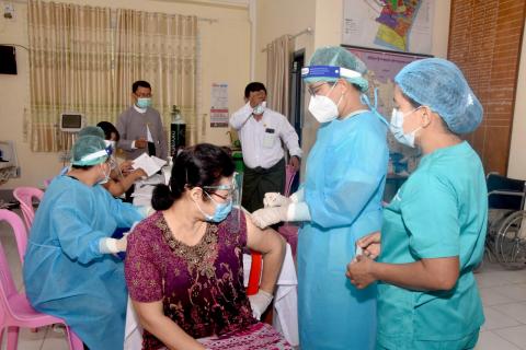 အင်းစိန်မြို့နယ်၊ ပြည်သူ့ကျန်းမာရေးဦးစီးဌာန၌ ကိုဗစ်−၁၉ ရောဂါ ကာကွယ်ဆေးထိုးနှံ