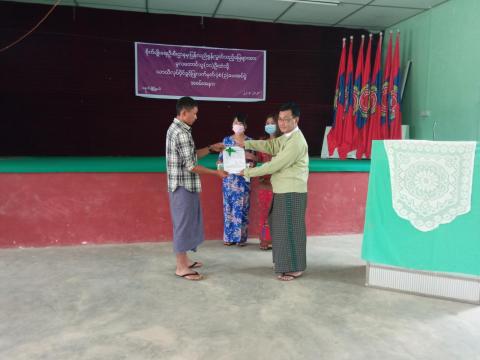 နောင်ချိုမြို့၌ စိုက်ပျိုးရေးဦးစီးဌာနမှ ပြန်လည်စွန့်လွှတ်မြေများအား မူလတောင်သူများထံ ယာယီလုပ်ပိုင်ခွင့်ပြုလက်မှတ်ပုံစံ (၃)ပေးအပ်ပွဲ အခမ်းအနားဆောင်ရွက်
