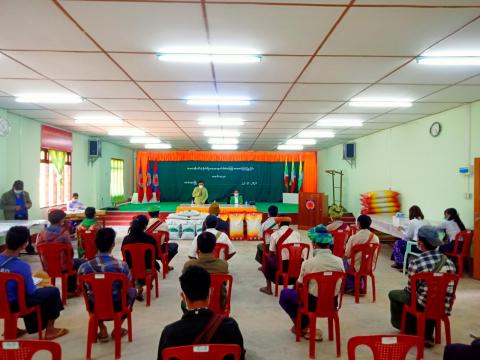 ပြည်နယ်စီ မံအုပ်ချုပ်ရေးကောင်စီဥက္ကဋ္ဌက မြစ်ကြီးနားမြို့နယ်အတွင်းရှိ ငွေပျော်စံပြကျေးရွာနေ အိမ်ထောင်စု (၄၃၁)စုအတွက် ဆန်အိတ်များထောက်ပံ့ပေးအပ်