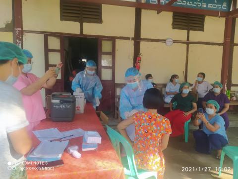 ဗန်းမောက်မြို့၌ ကျန်းမာရေးဝန်ထမ်းများအား ပထမအကြိမ် ကိုဗစ်-၁၉ ရောဂါကာကွယ်ဆေး စတင် ထိုးနှံပေး