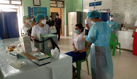 နတ်မောက်မြို့နယ်တွင် ကျန်းမာရေးဝန်ထမ်းများအား ကိုဗစ်-၁၉ကာကွယ်ဆေး ပထမအကြိမ် စတင်ထိုးနှံ