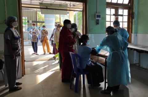 ဓနုဖြူမြို့နယ်တွင် ကျန်းမာရေးဝန်ထမ်းများအား ကိုဗစ်- ၁၉ရောဂါ ကာကွယ်ဆေး ပထမကြိမ်စတင်ထိုးနှံ