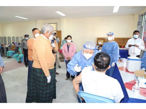 စစ်ကိုင်းတိုင်းဒေသကြီးဝန်ကြီးချုပ် ဒေါက်တာမြင့်နိုင် ကျန်းမာရေးဝန်ထမ်းများအား ကိုဗစ်-၁၉ ရောဂါ ကာကွယ် ဆေးထိုးနှံပေးနေမှုအခြေအနေနှင့် မုံရွာမြို့ပေါ်ရှိ Quaranti…