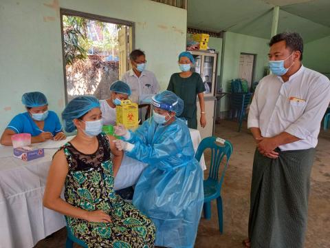 ကိုဗစ် - ၁၉ ကာကွယ်ဆေး သံဖြူဇရပ်မြို့နယ်တွင် ကျန်းမာရေးဝန်ထမ်းများအား စတင်ထိုးနှံပေး