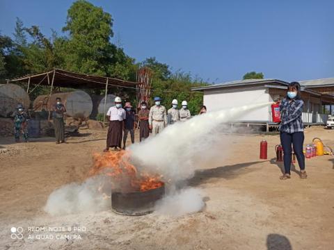 ကွမ်းခြံကုန်းမြို့နယ် မီးသတ်ဦးစီးဌာနမှ မီးဘေးကာကွယ်ရေး အသိပညာပေးဟောပြောမှုနှင့် မီးငြှိမ်းသတ်ခြင်း လက်တွေ့သရုပ်ပြဆောင်ရွက်