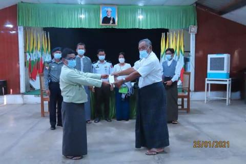 ဥတ္တရသီရိမြို့နယ်တွင် ပုံမှန်ဝင်ငွေမရှိသောအခြေခံလူတန်းစားအိမ်ထောင်စုများအား ထောက်ပံ့ငွေပေးအပ်