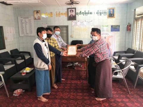 ဧရာဝတီတိုင်းဒေသကြီး၊ ဖျာပုံခရိုင်၊ ဖျာပုံမြို့နယ်တွင် အလှူရှင်များက နိုင်ငံတော်သို့ ကိုဗစ်-၁၉ ကာကွယ်ဆေးဝယ်ယူရန် ဒုတိယအကြိမ် အလှူငွေများလက်ခံခြင်းနှင့် ဂုဏ်ပြုမှတ်တမ်းလွှာများ ပေးအပ်ခြင်းကိုယနေ့တွင် အလှူရှင်များ၏ နေအိမ်များသို့ လိုက်လံပေးအပ်ခဲ့သည်။