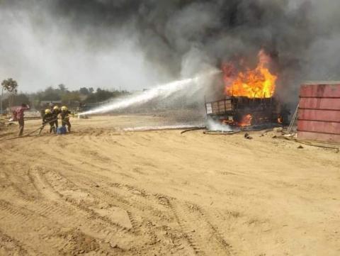 ပေါက်မြို့နယ်တွင် ရေနံစိမ်းတင် ကားတစ်စီးမီးလောင်မှုဖြစ်ပွား