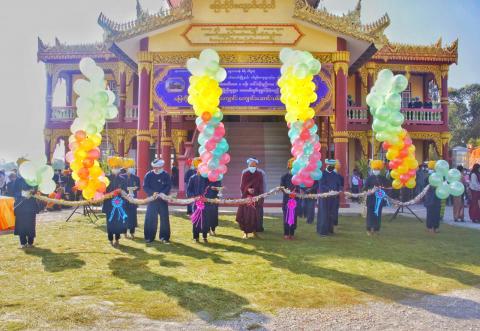 ပင်လောင်းမြို့နယ် မြေတိုင်ကျေးရွာဘုန်းတော်ကြီးကျောင်း ကျောင်းဆောင်သစ်တက်ပွဲမင်္ဂလာ အခမ်းအနားကျင်းပ