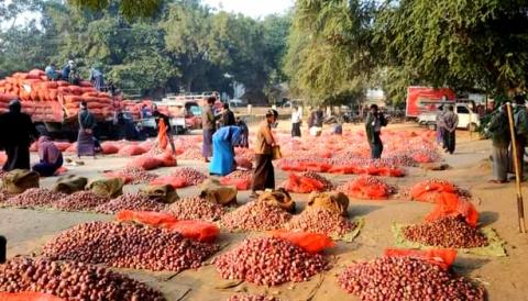 ပေါက်မြို့နယ်၌ မိုးနှောင်းကြက်သွန်နီ ဈေးနှုန်းများကျဆင်း၍ တောင်သူများ အရှုံးပေါ်