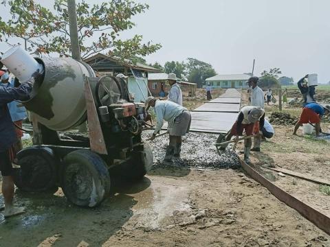 ကျောက်တန်းမြို့နယ် ပျဉ်းမကန်လေးကျေးရွာတွင် မြစိမ်းရောင်အတိုးရငွေဖြင့် ကွန်ကရစ်လမ်း ခင်းခြင်းလုပ်ငန်း ဆောင်ရွက်