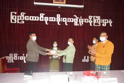 ရှမ်းပြည်နယ်(အရှေ့ပိုင်း)၊ ကျိုင်းတုံမြို့နယ်၊ ရပ်ကွက်၊ ကျေးရွာအုပ်စုများအတွင်းရှိ ပုံမှန်ဝင်ငွေမရှိသော အခြေခံအိမ်ထောင်စု(နောက်တိုး)၆၇၉၉ စုအား တစ်အိမ်ထောင်လျှင် ငွေကျပ် ၂၀၀၀၀ နှုန်းဖြင့် ထောက်ပံ့ပေးအပ်ခြင်းကို ယမန်နေ့က မြို့နယ်အထွေထွေအုပ်ချုပ်ရေးဦးစီးဌာနရုံး အစည်းအဝေးခန်းမ၌ ပြုလုပ်သည်။