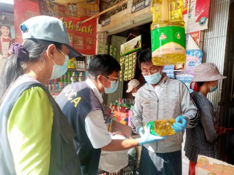 ပေါင်းတည်မြို့ စည်ပင်သာယာမြို့မဈေးကြီးအတွင်း ရောင်းချနေသော စားသုံးဆီအမျိုးမျိုးတွင် ကုန်ညွှန်းအမှတ်အသား ပြည့်စုံပါဝင်ခြင်း ရှိ/မရှိ စစ်ဆေးခြင်းကို ယနေ့ နံနက် ၁၀ နာရီက စစ်ဆေးသည်။