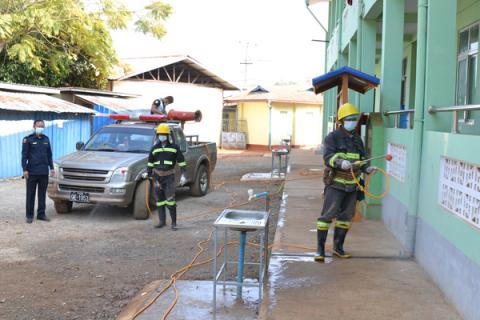 တန့်ယန်းမြို့နယ်တွင် ကိုဗစ်-၁၉ ရောဂါပိုး တွေ့ရှိခဲ့၍ စောင့်ကြည့်ရေးစခန်းအား ပိုးသတ်ဆေးဖျန်းခြင်း ဆောင်ရွက်