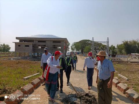 ဆက်သွယ်ရေး ကွန်ကရစ်လမ်းခင်းကျင်းနေမှုနှင့် 5MVA ဓါတ်အားခွဲရုံ တည်ဆောက်ပြီးစီးမှု များအား ကွင်းဆင်းကြည့်ရှုစစ်ဆေး
