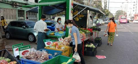 လမ်းမတော်မြို့နယ်တွင် အသား၊ငါး၊ဟင်းသီးဟင်းရွက်နှင့် အခြေခံစားသောက်ကုန်များအား Mobile market ကားများဖြင့်လိုက်လံရောင်းချ
