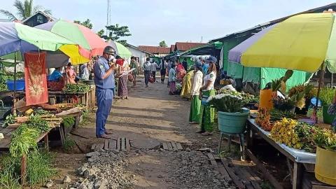 ဧရာဝတီတိုင်းဒေသကြီး၊ ငွေဆောင်မြို့၊ မြို့မစျေး၌ စျေးရောင်းချသူများနှင့် စျေးဝယ်လာသူများအား ကိုဗစ်-၁၉ရောဂါ ကာလအတွင်း သတ်မှတ်စည်းကမ်းချက်များနှင့်အညီ ရောင်းချခြင်း ရှိ/မရှိ ကွင်းဆင်း စစ်ဆေးခြင်းကို ယနေ့နံနက်ပိုင်းက ဆောင်ရွက်ခဲ့သည်။
