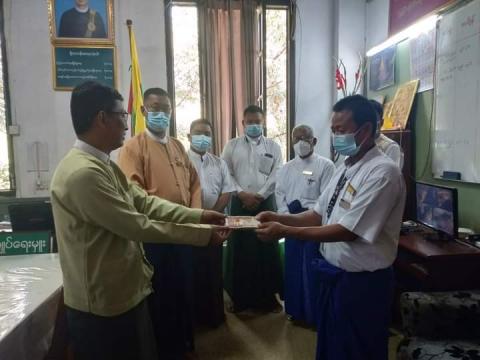 ရန်ကုန်တိုင်းဒေသကြီး၊ မြောက်ပိုင်းခရိုင်၊ အင်းစိန်မြို့နယ်၌ ကိုဗစ်-၁၉ ရောဂါပိုး တွေ့ရှိခဲ့သည့် စေတနာ့ ဝန်ထမ်းတစ်ဦးကို ကျန်းမာရေး အာမခံကြေး ထောက်ပံ့ပေးအပ်ခြင်းကို ယမန်နေ့ နေ့လယ် (၁)နာရီအချိန်က မြို့နယ်အထွေထွေအုပ်ချုပ်ရေးဦးစီးဌာနရုံးတွင် ပေးအပ်ခဲ့ကြောင်း သိရသည်။