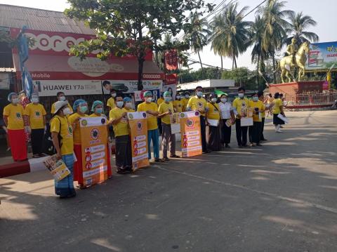 ခရမ်းမြို့တွင် လူထုအခြေပြုအဝါရောင် Mask Campaign ပြုလုပ်၍ အသိပညာပေး
