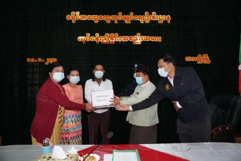 လားရှိုးမြို့၌ ကိုဗစ်-၁၉ ခရိုင်အဆင့်လုပ်ငန်းကော်မတီသို့ အလှူရှင်ကုမ္ပဏီများက အလှူငွေများ လာရောက်လှူဒါန်းပေးအပ်