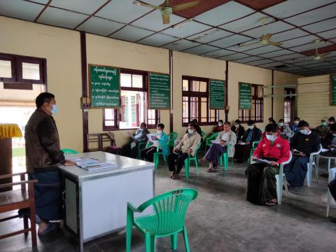 ကချင်ပြည်နယ် ၊ ဗန်းမော်ခရိုင် ၊ မိုးမောက်မြို့နယ်အတွင်း လက်ရှိတာဝန်ထမ်းဆောင် လျှက်ရှိသော ရပ်ကွက်/ကျေးရွာ အုပ်ချုပ်ရေးမှူးများ၏ ရာထူးသက်တမ်းသည် ၂၀၂၁ခုနှစ် မတ်လ ၃၁ရက်နေ့တွင် ကုန်ဆုံးမည်ဖြစ်ပြီး ရပ်ကွက်နှင့်ကျေးရွာအုပ်ချုပ်ရေးမှူး အသစ်များကို ဧပြီလ (၁)ရက်နေ့မှစ၍ တာဝန်ထမ်းဆောင်နိုင်ရေးအတွက်ရွေးချယ်ခန့်အပ် ပေးနိုင်ရန် ရပ်ကွက်/ကျေးရွာ အုပ်ချုပ်ရေးမှူး ရွေးချယ်ရေးဆိုင်ရာ ဥပဒေ၊ နည်းဥပဒေများကို ပြည်သူများ ကျယ်ကျယ်ပြန့်ပြန့် သိရှိစေရေးအတွက် ဇန်နဝါရီလ(၁၈)ရက်နေ့ နံနက်(၁၀)နာရီ ခန့်တွင် ကျခန်းဒပ်ကျေးရွာ နှစ်ခြင်းဘုရားကျောင်း ဓမ္မာရုံ၌ မြို့နယ်အုပ်ချုပ်ရေးမှူးဦးခိုင်မင်းကိုနှင့် တာဝန်ကျကြီးကြပ်အဖွဲ့တို့က အသိပညာပေး ရှင်းလင်း ဆွေးနွေး ခဲ့ကြောင်းသိရှိရပါသည်။
