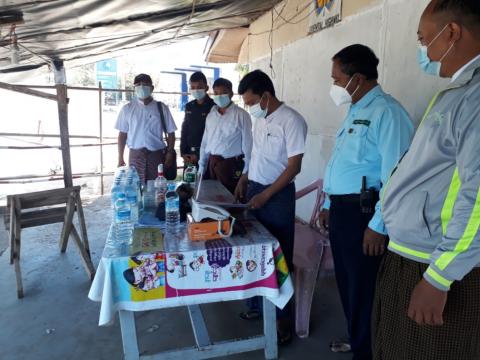 ငွေဆောင်မြို့အဝင်ဂိတ်တွင် ကိုဗစ်-၁၉ ရောဂါ ကာကွယ်ရေး ဆောင်ရွက်နေမှုများ ကွင်းဆင်းစစ်ဆေး