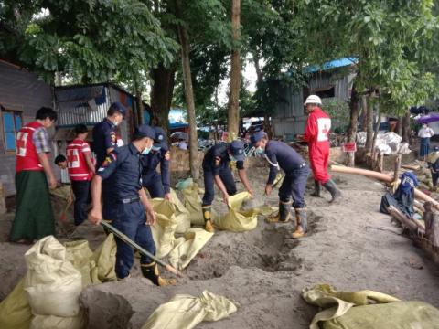 ရန်ကုန်တောင်ပိုင်းခရိုင်၊ ဆိပ်ကြီးခနောင်တိုမြို့နယ်၌ ဩဂုတ် ၁၂ ရက်က ဒီရေတက်ချိန် ရေတိုက်စားခြင်းကြောင့် ပြိုကျပျက်စီးခဲ့သည့် ဆိပ်ကြီးအရှေ့ရပ်ကွက်၊
